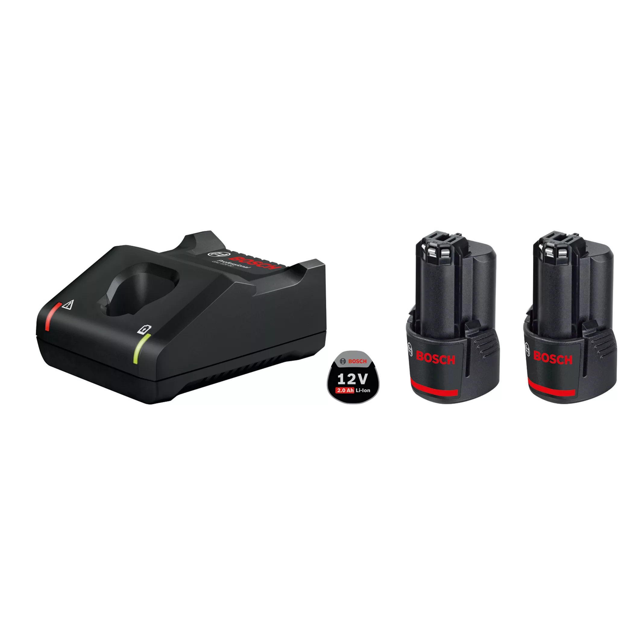 - Comes with Cardboard box, 2x battery GBA 12V 2.0Ah 1 600 Z00, 02X, Quick charger GAL 12V-40, Professional 1 600 A01 9R4
