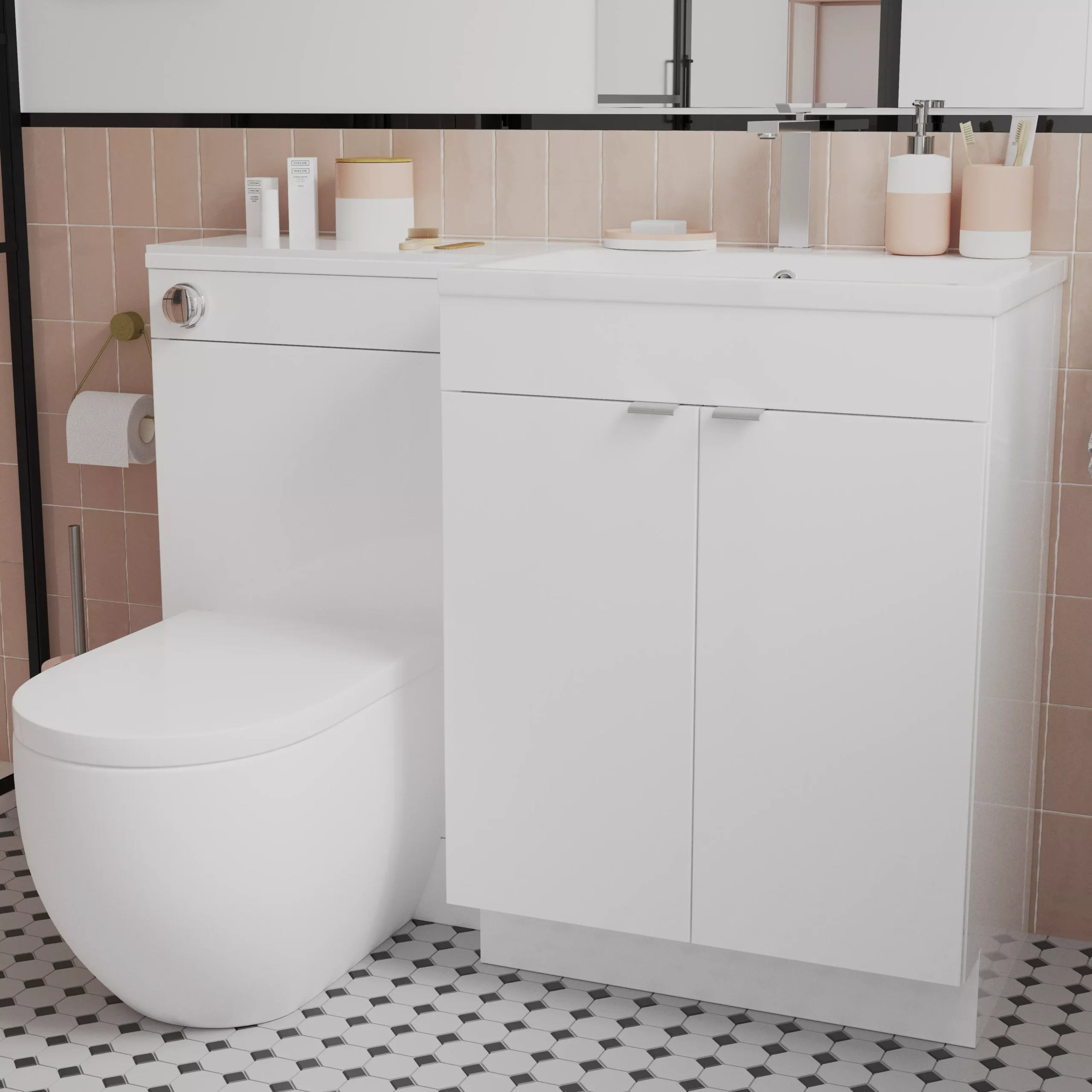 Spacious, simple and effective. Imandra modular furniture can be mixed and matched to house everything in your bathroom.