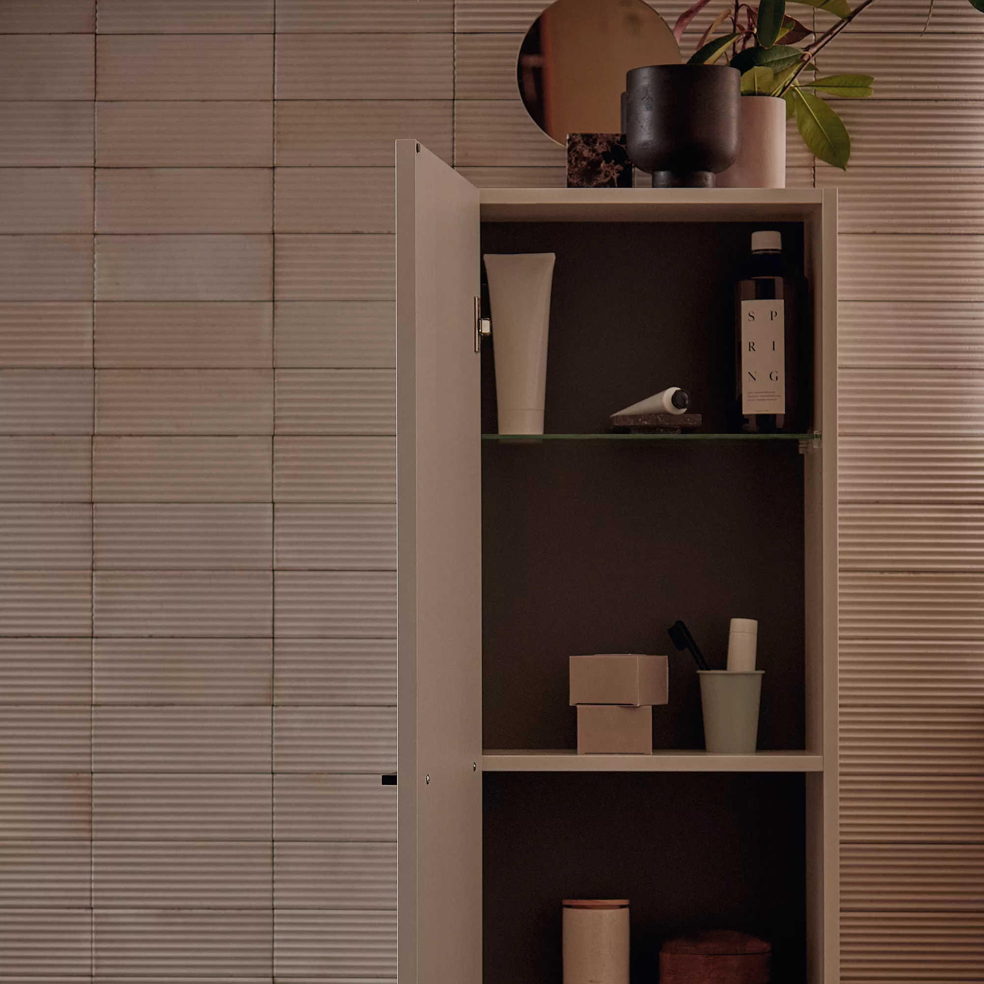 This sleek, wall-mounted bathroom cabinet will add stylish storage to your space. Crafted from durable melamine and chipboard in a crisp white matt finish, it features a single cabinet door that opens to reveal two adjustable shelves inside, perfect for keeping all your essentials organised and out of sight. Measuring 120cm high and 40cm wide, it’s ideal for smaller bathrooms where floor space is at a premium. With moisture-resistant construction, this cabinet is built to last in the humidity of a bathroom, the perfect bathroom cabinet for convenient yet compact storage.